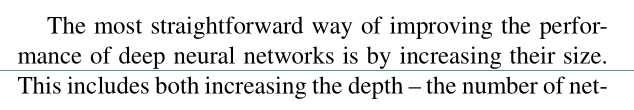 deep neural networks 의 성능을 향상시키는 가장 간단한 방법은 size를 늘리는 것이다. 여기에는 depth , width 증가 두가지가 포함된다.