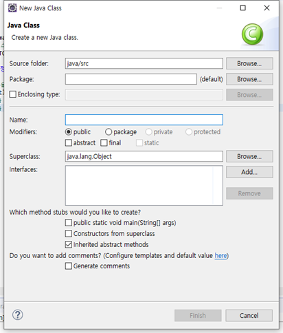 [프로젝트 마우스 오른쪽 -> New -> Class]