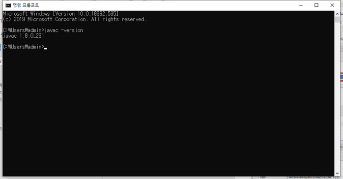 환경 변수 Path가 잘 적용되었는지 체크하기 위해 명령 프롬프트를 실행하고 (기존에 실행된 명령 프롬프타가 있다면 닫고 새로 열어야 된다.)