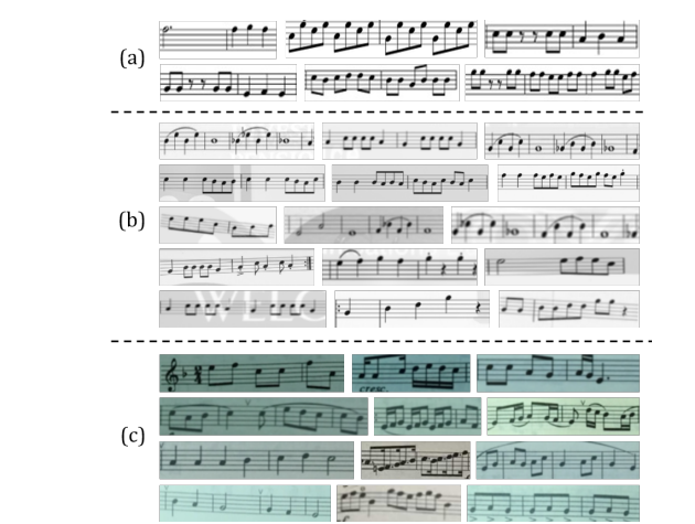 3) “Real-World”, which contains 200 images of score fragments taken from music books with a phone camera. Examples are shown in Fig. 5.c.1