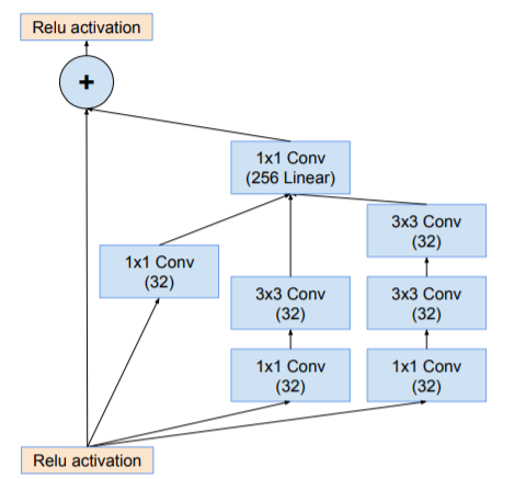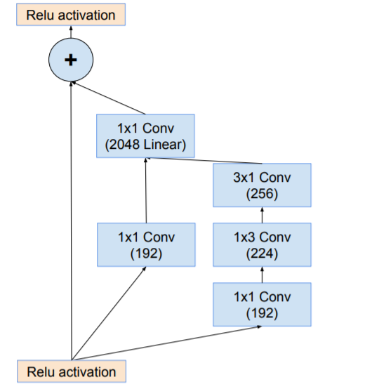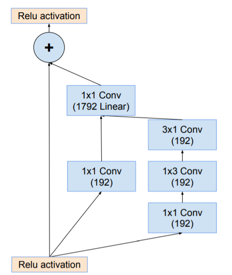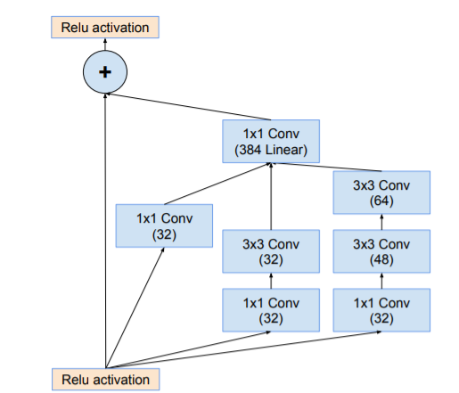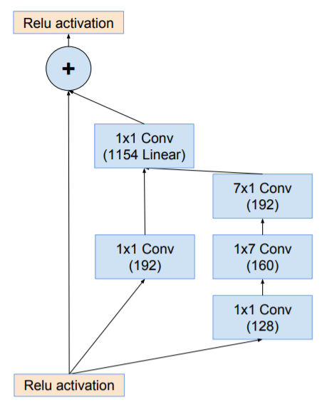 residual 버전의 Inception networks에서 우리는 the original Inception보다 저렴한 Inception blocks사용한다.각 Inception block 뒤에는, filter bank의 dimension을 입력의 depth에 맞추기 위한 filter-expansion layer(1 × 1 convolution without activation) 가 사용된다. Activation이 없는 1x1 conv layer에 해당하며, 이는 Inception block에 의한 dimensionality reduction을 보완하기 위함이다.