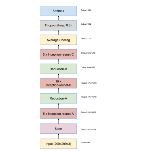 • Inception-ResNet-v2: a costlier hybrid Inception version with significantly improved recognition performance.