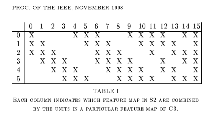 Table1 . shows the set of S2 feature maps conbined by each C3 feature map.