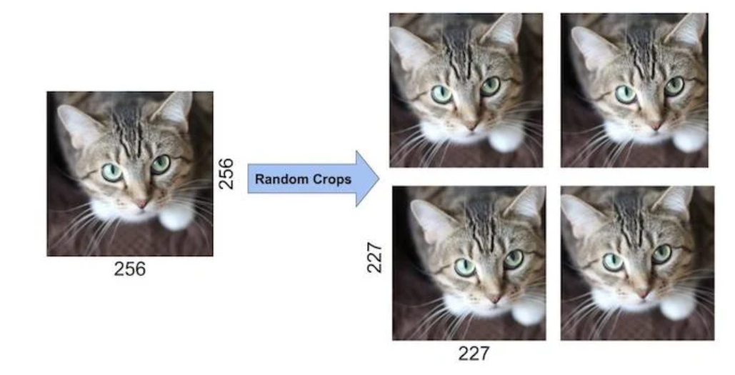 한장의 이미지에서 ((256-224)^2)*2=2048 의 다른 이미지를 수 있다.