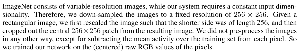 ImageNet은 variable-resolution images로 되어 있으며 , 시스템에서는 일정한 input dimensionality이 필요하다.