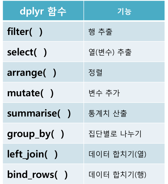 dplyr 패키지를 이용한 데이터 전처리