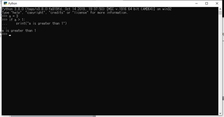 아래의 예제는 a가 1보다 크면 ‘a is greater than 1’이라는 문장 출력