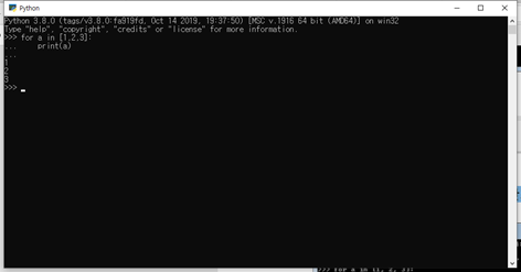 아래의 예제는 for문을 이용하여 [1, 2, 3] 안의 값들을 하나씩 출력