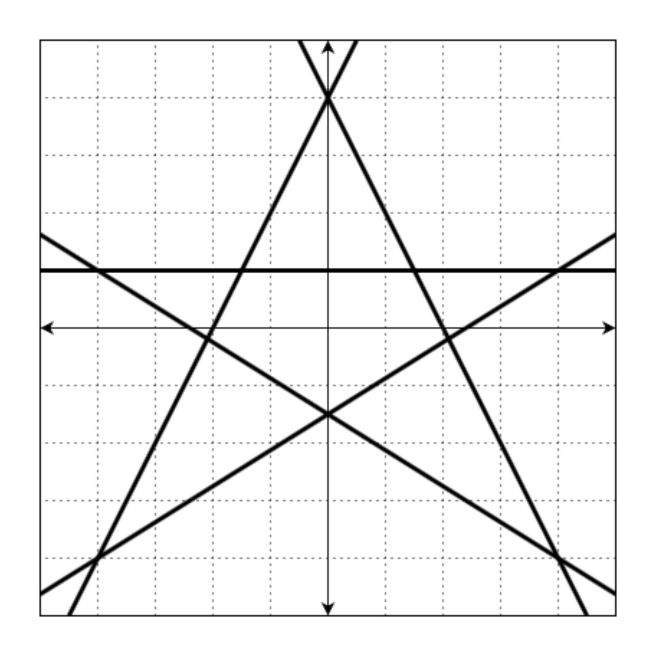line = [[2, -1, 4], [-2, -1, 4], [0, -1, 1], [5, -8, -12], [5, 8, 12]]