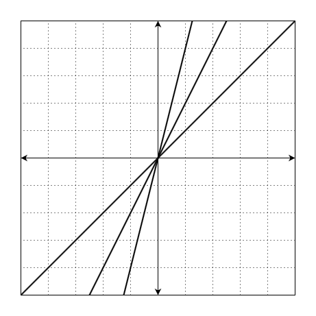 직선 y = x, y = 2x, y = 4x는 다음과 같습니다.