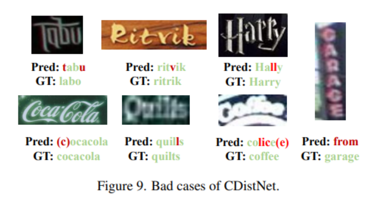 It clearly verifies the advantage of CDistNet in recognizing difficult text.