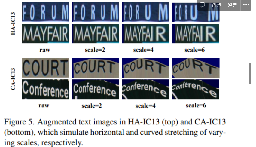 (b) HA-IC13 and CA-IC13 datasets are created by horizontal and curved stretching ICDAR2013 with various scales.
