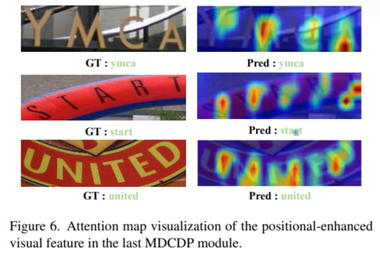 시각화는 또한 CDistNet이 visual and semantic domains 모두 에서 적절한 attention localization를 달성함을 보여준다.