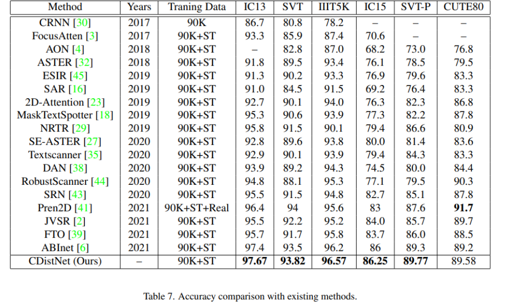 - we carry out extensive experiments with different configurations and compare CDistNet with existing methods.