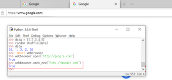 webbrower의 open 함수는 웹 브라우저가 실행된 상태이면 입력주소로 이동함