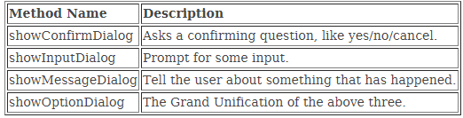 4)javax.swing.JOptionPane