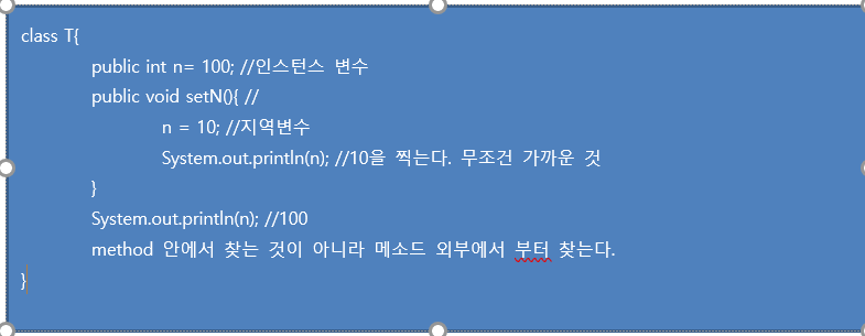 //메소드 외부에서 먼저 찾습니다.