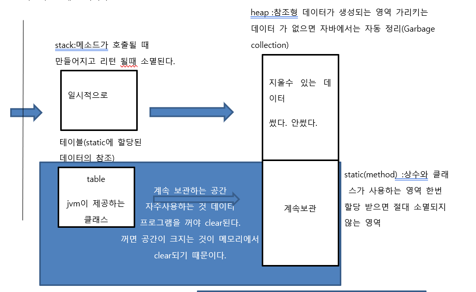 =>메소드는 호출되면 자신의 메모리 영역(Stack)을 생성하고 자신의 작업이 종료되면(return)자신의 메모리 영역을 해제합니다.