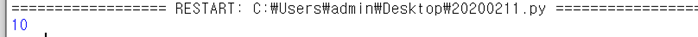 =>파이썬은 줄 단위로 해석하면서 실행되면 한 번에 실행되는 문장의 끝에서 데이터를 출력할 때는 데이터만 남겨도 출력이 됩니다.