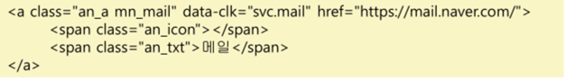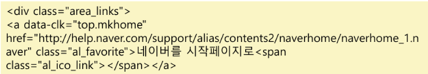 ‘네이버를 시작페이지로’는 <a>라는 태그 안에 텍스트가 들어 있는 형태임.