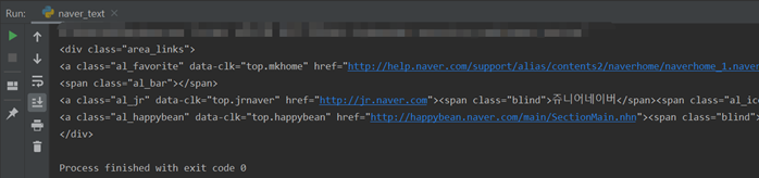<div class=“area_links”></div> 이 영역만 추출해보도록 하겠음.