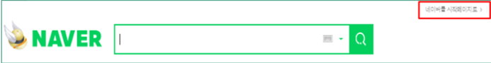 네이버 첫 페이지에서 맨 오른쪽 위에 있는 ‘네이버를 시작페이지로‘라는 단어 두 개만 뽑아보기