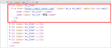 HTML 코드를 보면, <div>라는 태그 안에 <a></a>가 들어 있는 구조임.