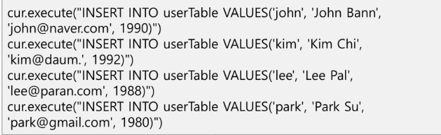 ## 변수 선언 부분 ## con, cur = None, None data1, data2, data3 = "", "", "" sql = ""