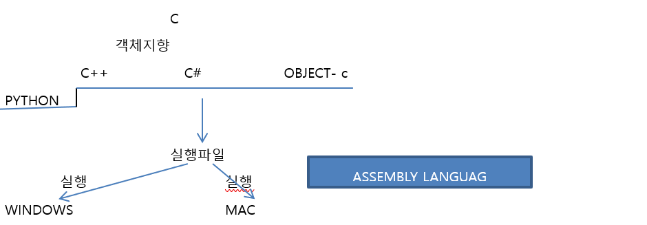 C++, C#, OBJEC-C, PYTHOn등을 말하기 위해서는 실행파일을 해야한다.