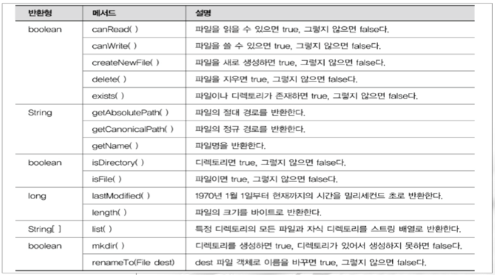 v File 클래스를 이용하면 파일의 크기, 생성, 삭제 작업 및 마지막 수정날짜 등 다양한 정보를 알 수 있는 메소드를 제공