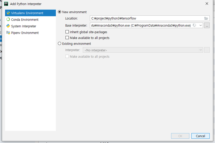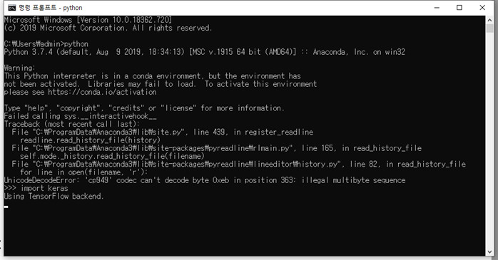 Windows 운영체제 홖경에서 python-3.x 또는 Anaconda3-5.x 가 설치된 다음에 tensorflow 를