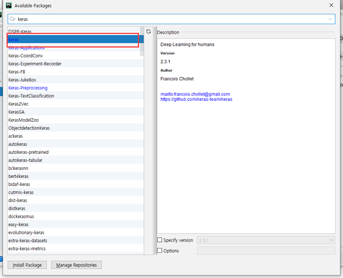 tensorflow2.0 이 설치되면 keras도 같이 설치 된다.